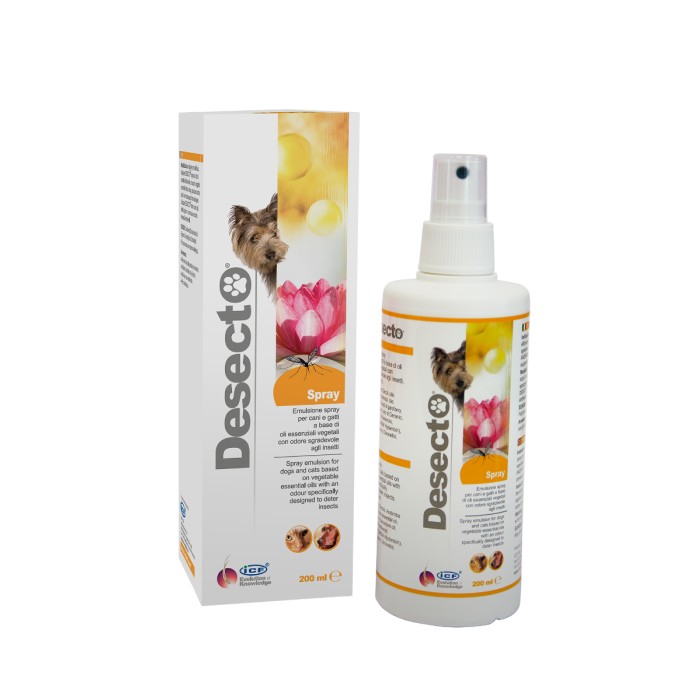 - Desecto suihke koirille ja kissoille sisältää kasvien eteerisiä öljyjä
